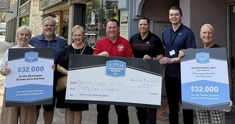 “Armstrong Regional Co-op is proud to support local organizations like the Okanagan Screen Arts Society that are making a difference to our members and to our community,” said Jason Keis, Marketing and Community Relations Manager, Armstrong Regional Co-op. “When completed, the Vernon Towne Theatre’s accessibility project will open our local theatre and make it available for everyone in our community to enjoy.”